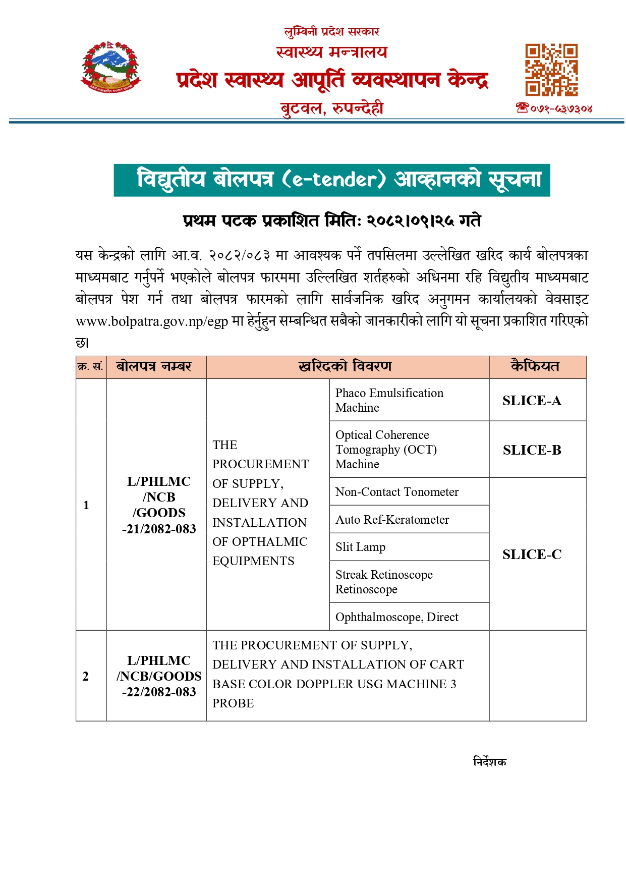 विद्युतीय सिलबन्दी दरभाउपत्र आव्हानको सूचना