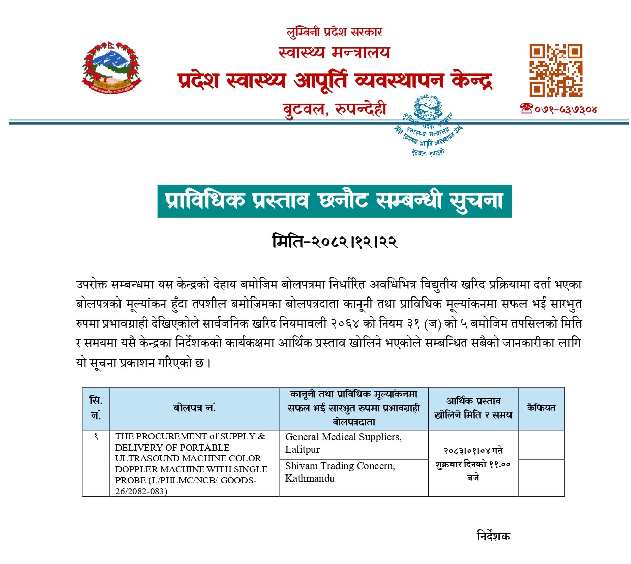 प्राविधिक प्रस्ताव छनौट सम्बन्धी सुचना