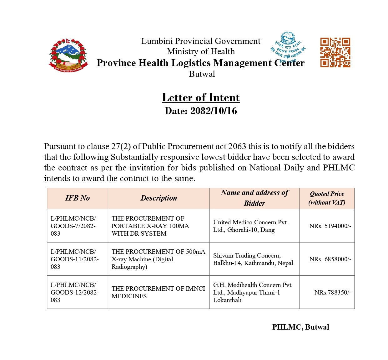 माघ १६, २०८२ Letter of Intent